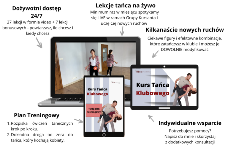 - Poznasz kilkanaście ruchów tanecznych połączonych w kombinacje, które zatańczysz w klubie i możesz je DOWOLNIE modyfikować